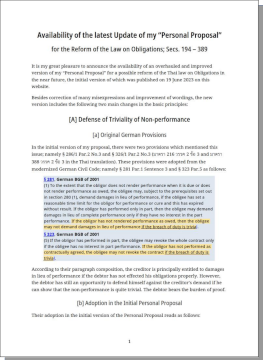 It is my great pleasure to announce the availability of an overhauled and improved version of my “Personal Proposal” for a possible reform of the Thai law on Obligations in the near future, the initial version of which was published on 19 June 2023 on this website.